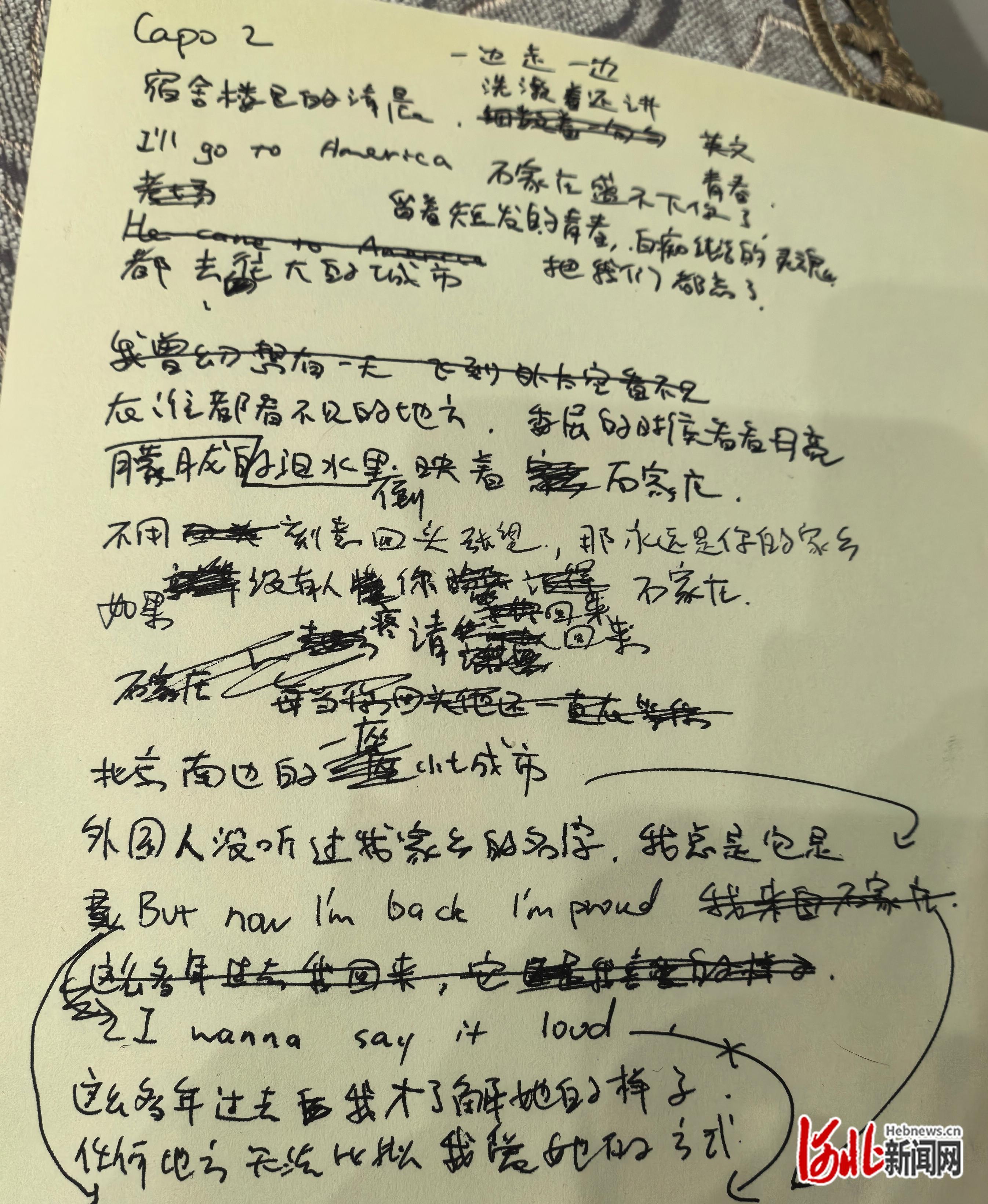 歌曲作词初稿。张泽玥供图