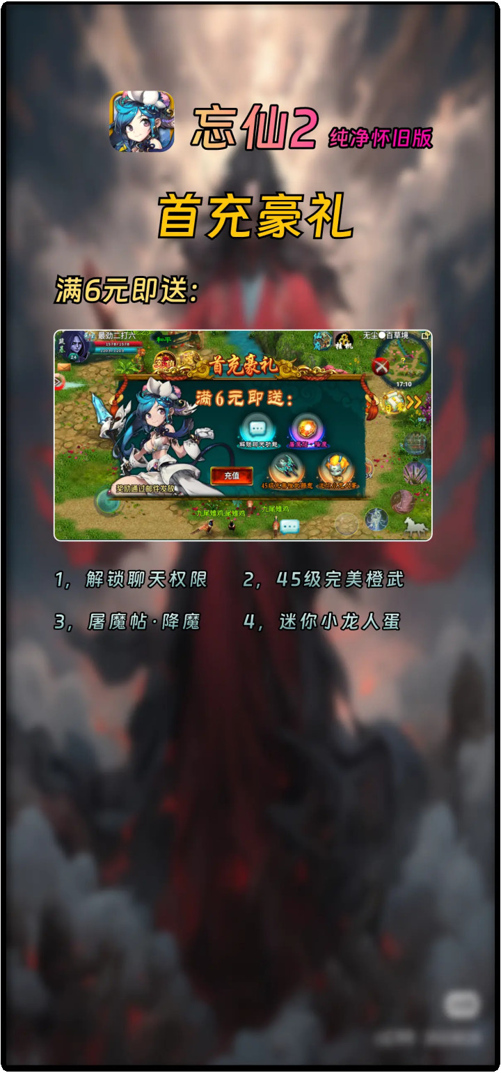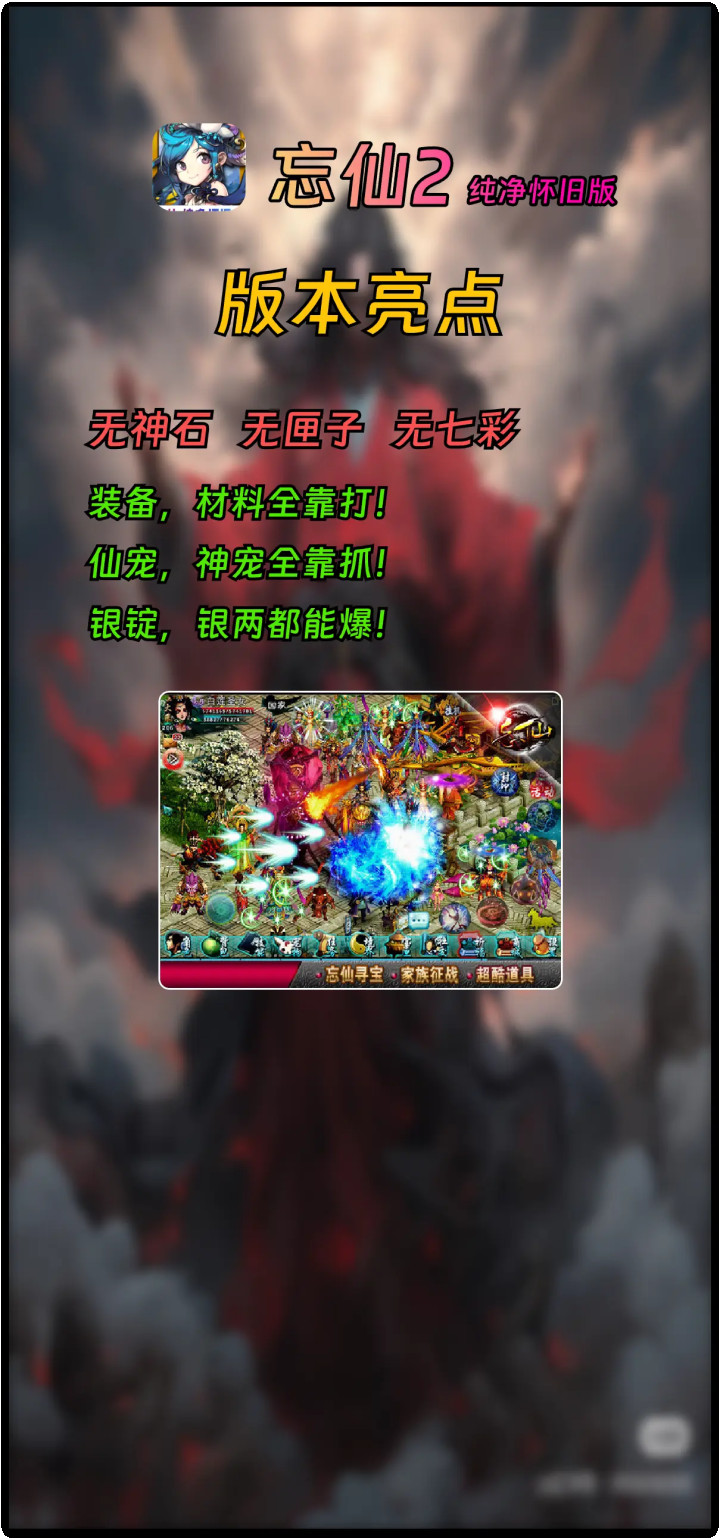 【忘仙2纯净怀旧版】版本亮点,开荒豪礼。