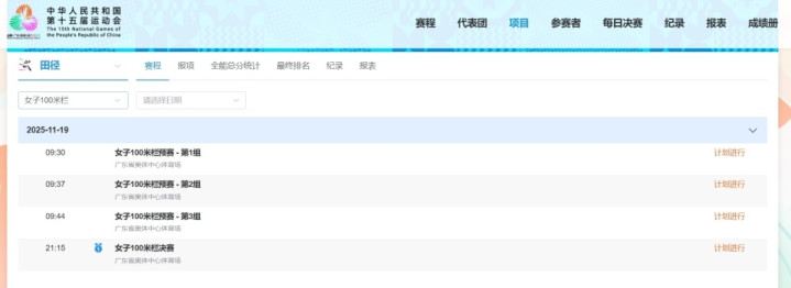据了解,田径比赛将于11月15日陆续展开,吴艳妮所参加的女子100米栏项目要到19日开始比赛。