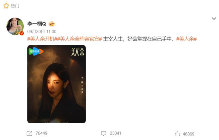 目前李一桐主演的另一部都市剧《美人余》也正式官宣开机,从角色海报就能看出作品的质感。角色独白的“主宰人生”的slogan也很有当代爽文女主风格,姐姐的状态更是好到不行。