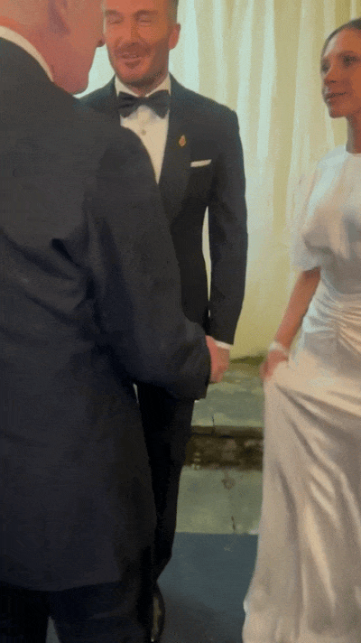 尽管身着拖地晚礼服,然而贝嫂所行的屈膝礼,确实极为标准且具备美感,想来在私底下肯定没少耗费时间去练习。